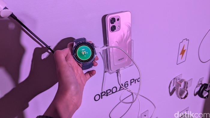Baterai Oppo A6 Pro juga dapat menjadi power bank dadakan untuk mengisi daya perangkat Oppo lainnya, mulai dari smartwatch, TWS, sampai tablet. Foto: Virgina Maulita Putri/detikINET
