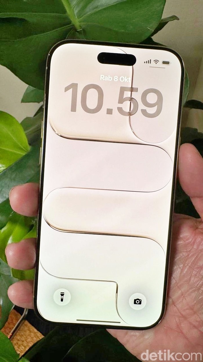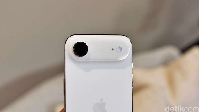 Bagian belakang terdapat tonjolan yang disebut Plateau. Apple menyematkan kamera belakang 48MP Fusion Camera yang revolusioner. Lensa tunggal ini setara empat lensa konvensional, menghasilkan gambar tajam dengan Photonic Engine untuk detail optimal di segala cahaya, plus Deep Fusion untuk kondisi sedang.Di depan, kamera 18MP Center Stage elevasi selfie dengan auto-framing cerdas. Foto: Adi Fida Rahman/detikINET