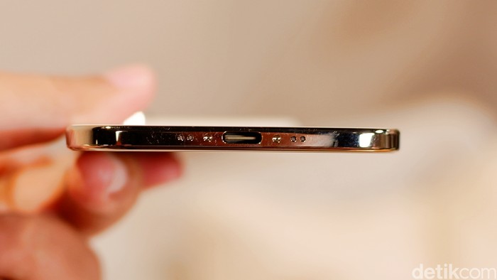 Frame titanium yang dipoles memberikan kekuatan ekstra, membuatnya lebih durable daripada iPhone sebelumnya. Foto: Adi Fida Rahman/detikINET
