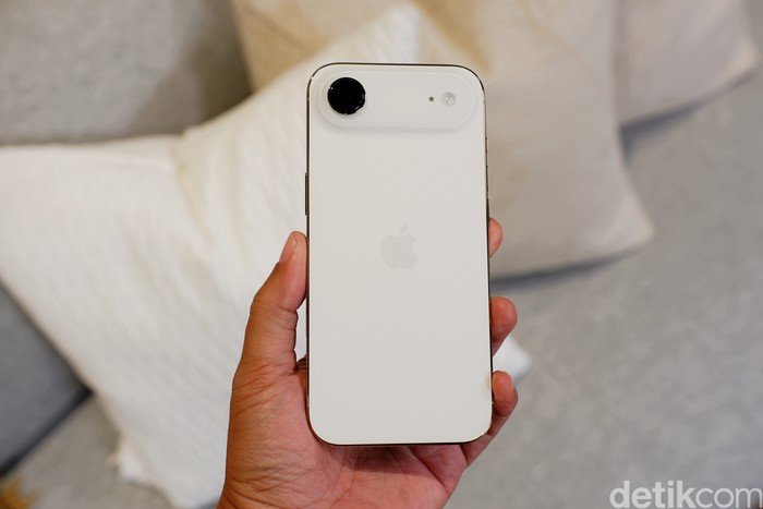 iPhone Air menjadi iPhone paling tipis yang pernah dibuat Apple dengan ketebalan hanya 5,6 mm. Desain super ramping ini tercapai berkat penggunaan rangka titanium dan kaca Ceramic Shield generasi baru, membuatnya tetap kokoh meski ultra-tipis. Bobotnya ringan, hanya 165 gram, memberi sensasi nyaman saat digenggam. Β Foto: Adi Fida Rahman/detikINET