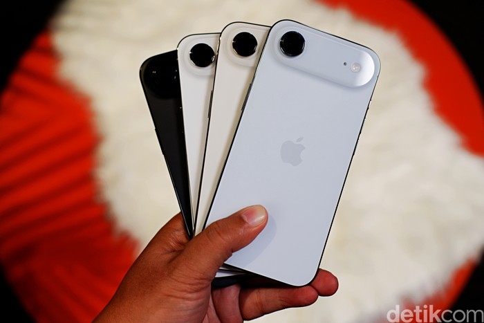 iPhone Air hadir dalam empat varian warna mencakup space black yang elegan dan misterius, cloud white segar untuk gaya minimalis, light gold mewah seperti emas tipis, serta sky blue cerah yang energik untuk pengguna muda. Foto: Adi Fida Rahman/detikINET