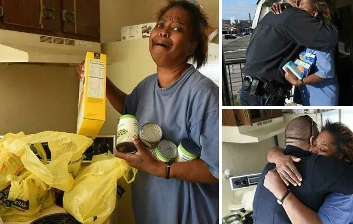 Ketahuan mencuri lima telur untuk makan anaknya, Petugas Polisi Tarrant, Stacy, mebawakannya banyak bahan makanan. Foto: LuluTease via Bored Panda