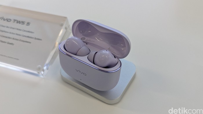 Berikutnya ada earbuds wireless Vivo TWS 5 yang hadir dalam varian standar dan Hi-Fi. Foto: Virgina Maulita Putri/detikINET