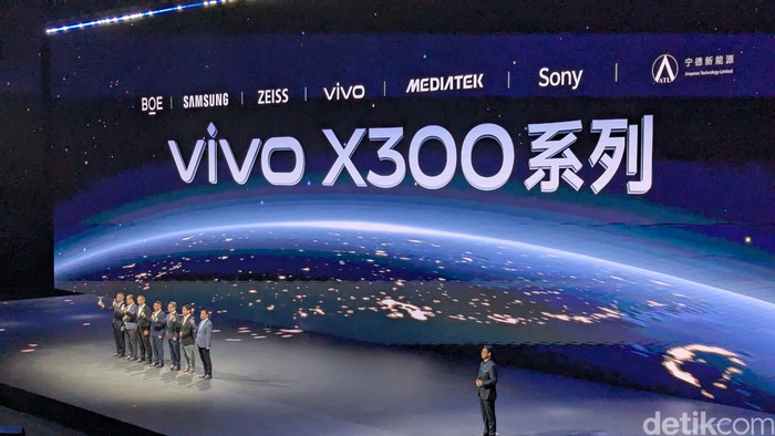 Eksekutif Vivo dan sejumlah perusahaan mitra seperti MediaTek dan Samsung bergantian naik ke atas panggung untuk mengumumkan deretan inovasi terbaru di X300 series. Foto: Virgina Maulita Putri/detikINET