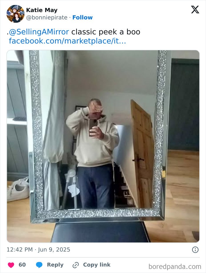 Ingin jual cermin online malah jadi viral! Foto refleksi penjual yang tak sengaja terekam ini bikin netizen heboh dan ngakak bareng di internet.