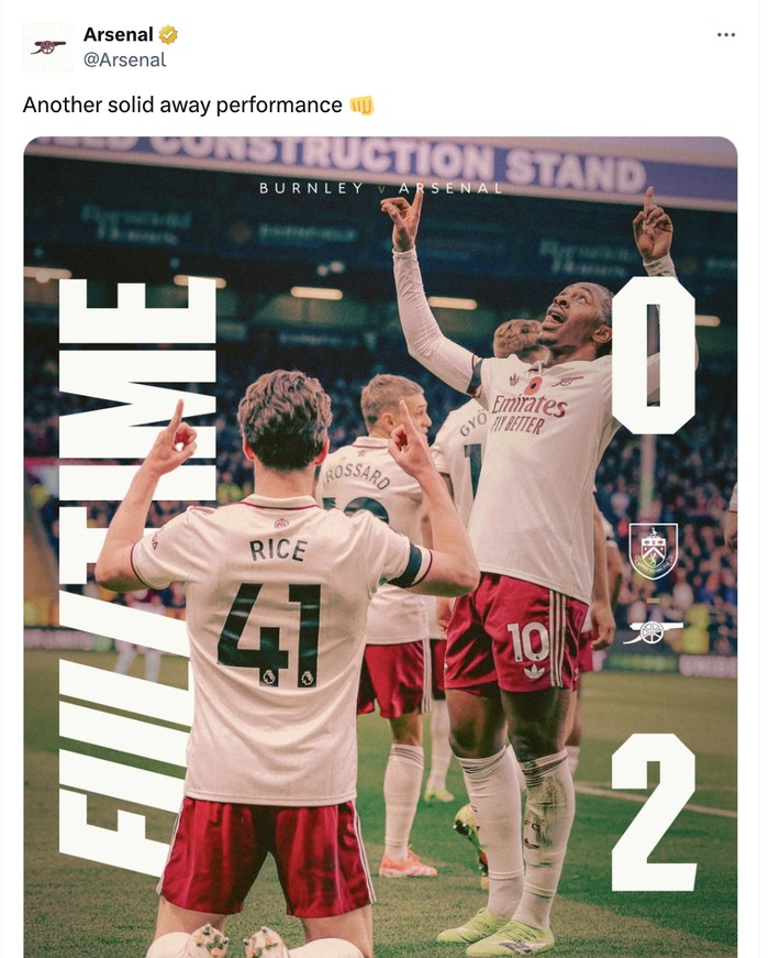 Arsenal menang 2-0 atas Burnley. Foto: X.com