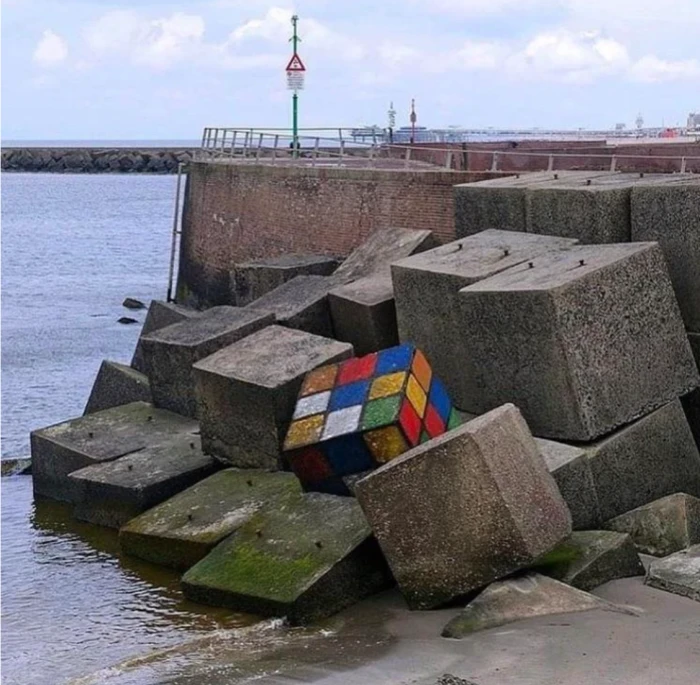 'Eroded Rubik’s Cube' di Pelabuhan Scheveningen, Belanda. Foto: via StreetArtUtopia