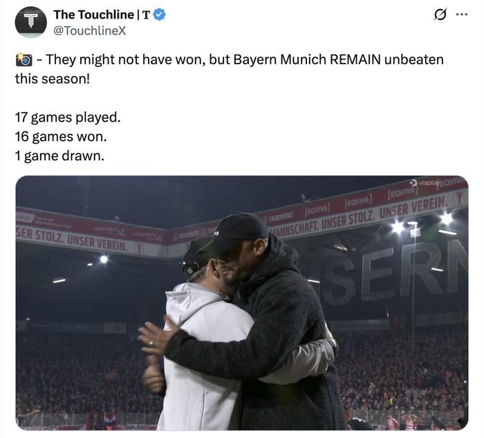 Tetap saja Bayern Munich belum pernah terkalahkan musim ini. Foto: X.com