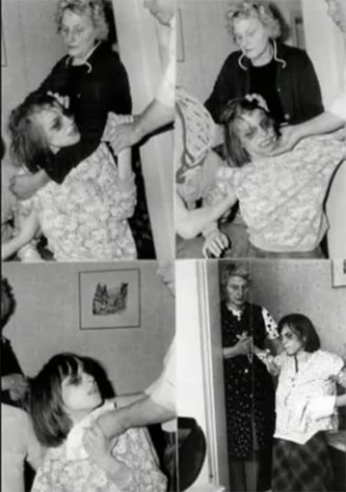 Annaliese Michel, gadis yang digambarkan di sini, konon dirasuki setan. Kisahnya belum terbukti, tetapi menurut beberapa sumber, foto-foto ini diambil untuk membantu proses pengusiran setan. Ia konon dirasuki oleh enam setan, masing-masing dengan suara dan tingkah laku yang khas. Foto: Boredpanda