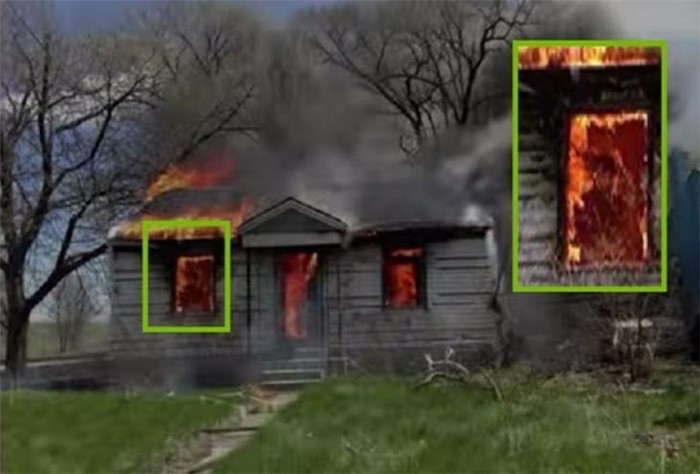 Saat rumah dalam gambar ini terbakar, Anda dapat melihat sosok yang tampak seperti seorang pria mengintip melalui salah satu jendelanya. Hingga kini, tidak ada yang tahu pasti sosok apa itu. Foto ini diambil di Gary, Indiana. Saat rumah itu dilalap api, petugas pemadam kebakaran yang datang mengambil foto. Malam harinya, istrinya terkejut ketika melihat sosok gelap nan menyeramkan tepat di tengah bingkai jendela. Bayangan samar seorang anak kecil juga terlihat di ambang pintu. Foto: Boredpanda