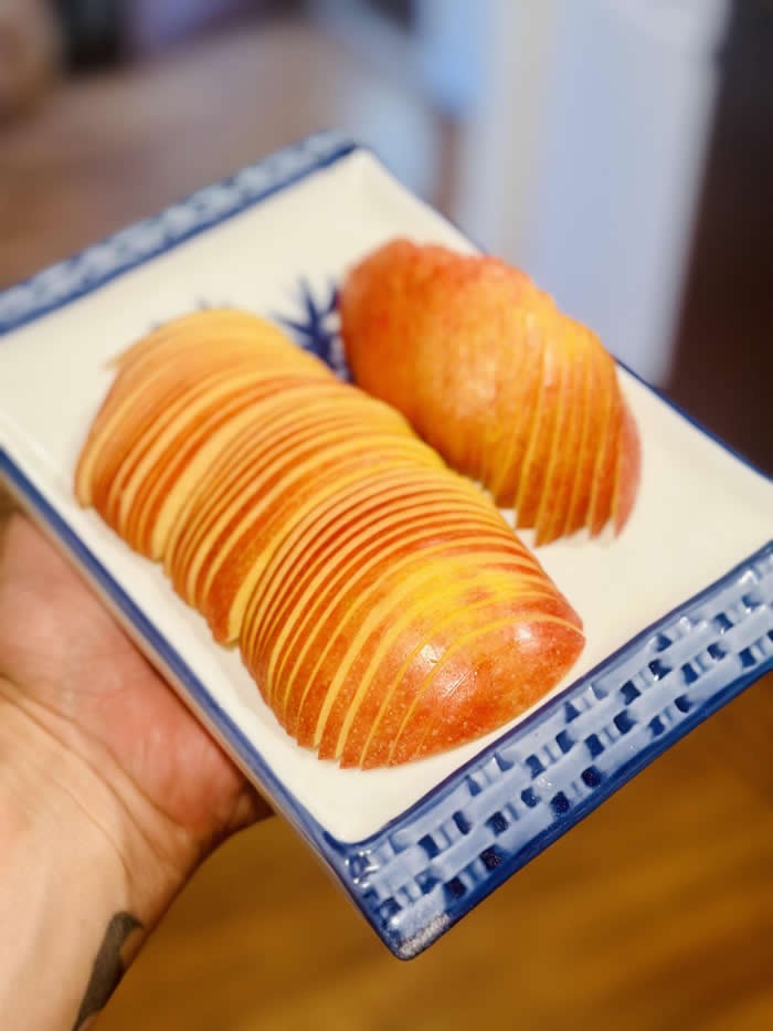 Memotong apel dengan repi dan presisi. Foto: via 121Clicks
