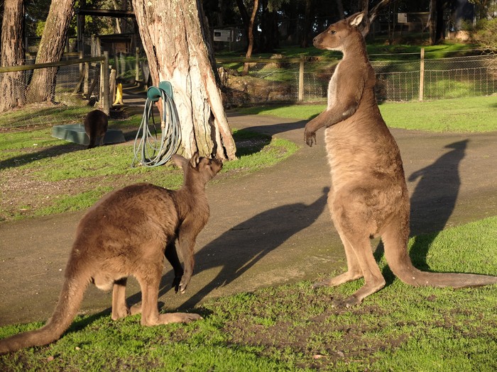 Kanguru: 20 juta tahun. Fakta menarik tentang nenek moyang kanguru yang telah punah 10-15 juta tahun yang lalu adalah bahwa mereka tidak melompat dengan 2 kaki, tetapi berjalan dengan 4 kaki. Foto: Kanguru di Ballarat Wildlife Park (Foto: Ikhwanul Khabibi/detikcom)