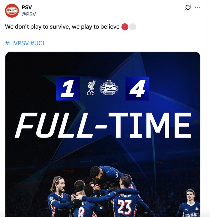 Akun resmi PSV di X merayakan kemenangan mereka.Β Foto: X.com