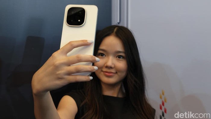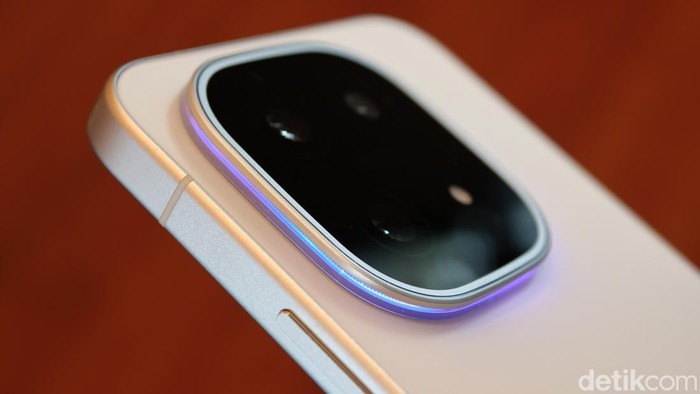 Sektor kamera belakang mengandalkan konfigurasi tiga sensor. Ada 50MP Sony IMX921 utama (1/1,56 inci) dengan VCS, Self-Developed OIS Ultra Stabilization (sertifikasi CIPA 4.5), 50MP Ultra Wide-Angle, dan 50MP Periscope (IMX882) dengan zoom optik 3x serta digital 100x. Fitur AI Visual Effect tambah kreativitas. Foto: Adi Fida Rahman/detikINET
