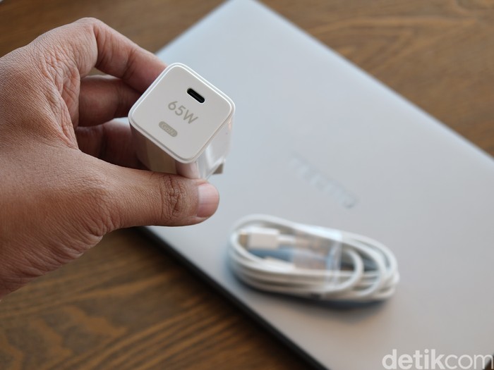 HP ini dibekali adaptor 65W dalam paket penjualannya. Foto: Adi Fida Rahman/detikINET