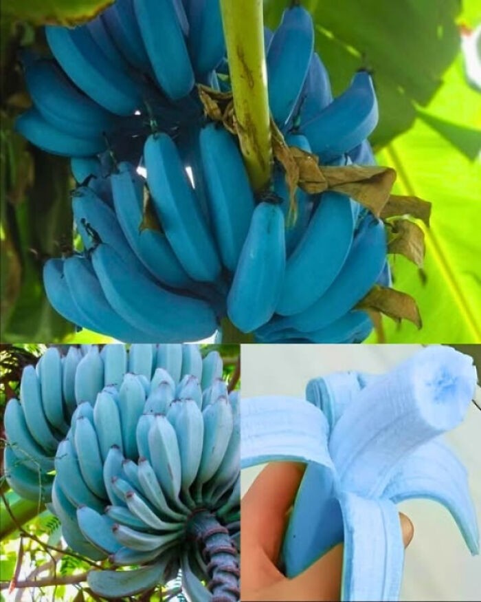 Buah ini dikenal sebagai Blue Java Banana, pisang berwarna biru yang dagingnya lembut dan rasanya mirip vanilla ice cream. Foto: Boredpanda