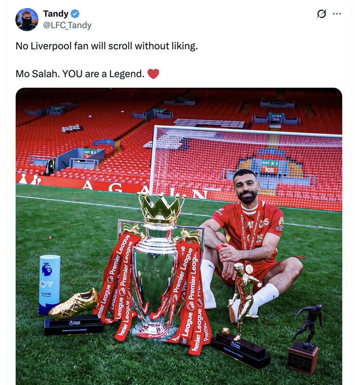Komentarnya memicu pro kontra. Banyak yang membelanya karena Mo Salah legenda besar Liverpool. Foto: X.com