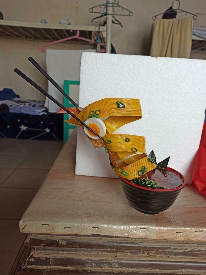 Detail warna cerah dan bentuk mie kuah menjadikan sepatu ini lebih mirip objek pameran daripada alas jalan, alias bikin lapar. Foto: Boredpanda