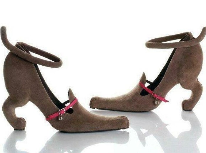 Dua sepatu ini tampak seperti anjing saling berhadapan, seolah sedang berdialog sebelum dipakai melangkah. Foto: Boredpanda