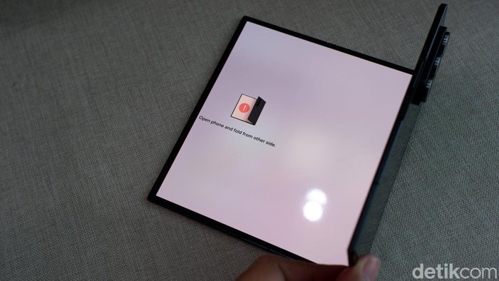 Bilamana pengguna salah melipat akan ada tanda peringatan di layar dan getaran. Foto: Adi Fida Rahman/detikINET