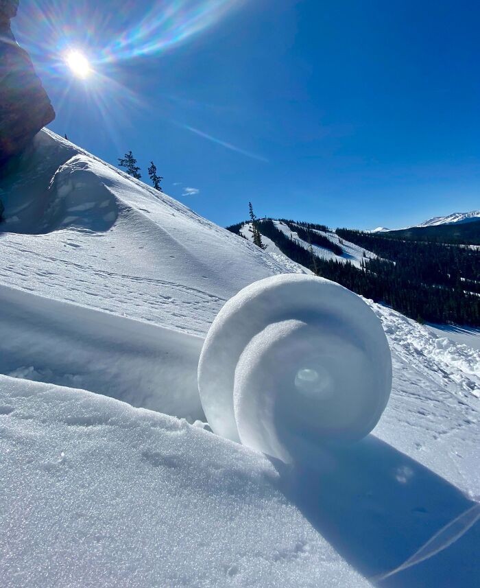Fenomena salju menggulung di Keystone, Colorado, dikenal juga dengan sebutan snownuts. Foto: via Bored Panda