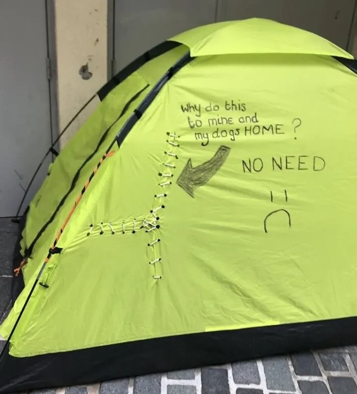 Kenapa harus merusak tendanya? Dia bahkan nggak punya rumah, cuma ada itu sebagai atap. Foto: gwinefcc via Bored Panda