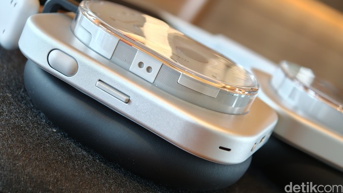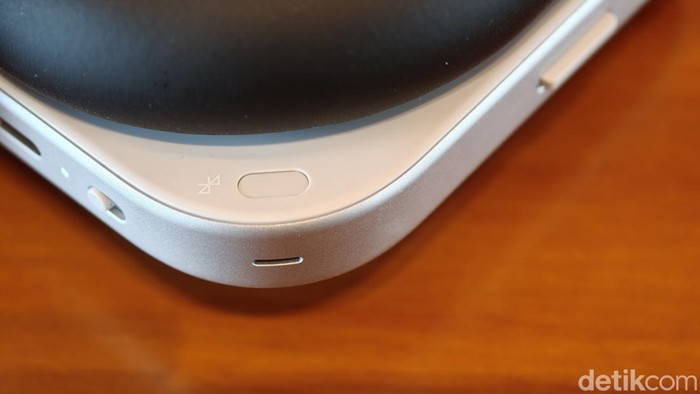 Terletak di bagian bawah ear cup kanan, yang menampilkan indikator warna (merah untuk mati, putih untuk hidup), bersanding port USB-C dan jack audio 3,5 mm Foto: Adi Fida Rahman/detikINET