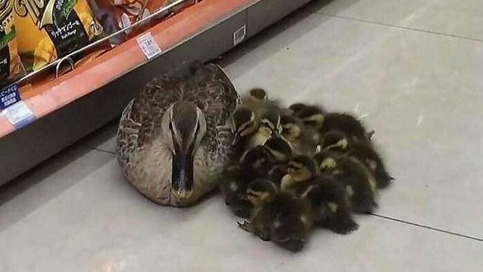 Belanja memang bukan urusan mudah, apalagi kalau kamu adalah seorang ibu tunggal dengan selusin anak bebek yang harus diawasi di tengah rak supermarket. Untungnya, mereka semua tetap tenang berkerumun. Foto: Dok. Boredpanda