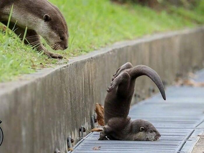 Berang-berang yang diatas terlihat mukanya sangat kaget melihat temannya yang tersungkur.Β Β Foto: Dok. Boredpanda