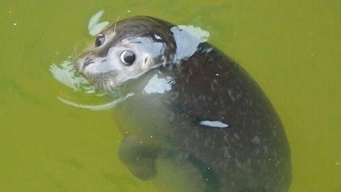 Ekspresi anjing laut ini benar-benar tak ternilai, ia terlihat seperti baru saja terciduk sedang buang air kecil di dalam kolam. Mata bulatnya yang besar dan ekspresi kagetnya membuat siapa pun yang melihatnya tertawa gemas.Β Foto: Dok. Boredpanda