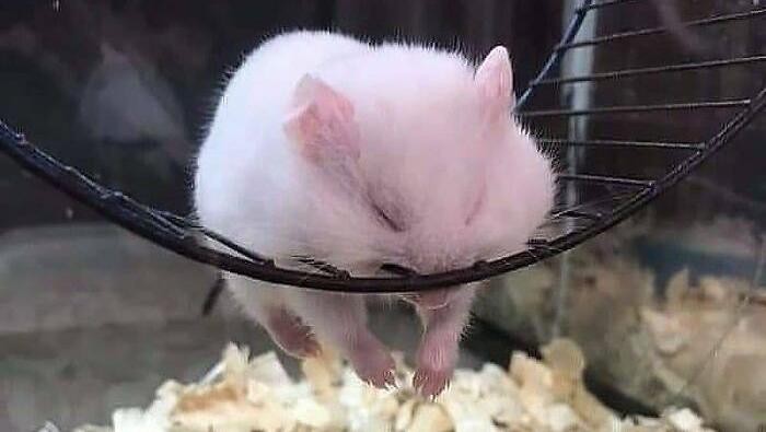 Tidak ada yang lebih menenangkan daripada melihat seekor hamster putih mungil yang sedang menikmati mimpi indah sambil bersandar di roda putarnya. Tubuhnya yang bulat dan pipinya yang gembul membuatnya tampak seperti gumpalan kapas yang sedang beristirahat.Β Foto: Dok. Boredpanda