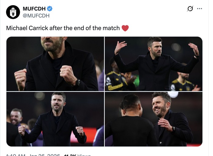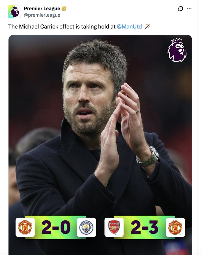 Baru melatih dua pekan, Michael Carrick menang dua kali melawan dua tim raksasa. Foto: X.com