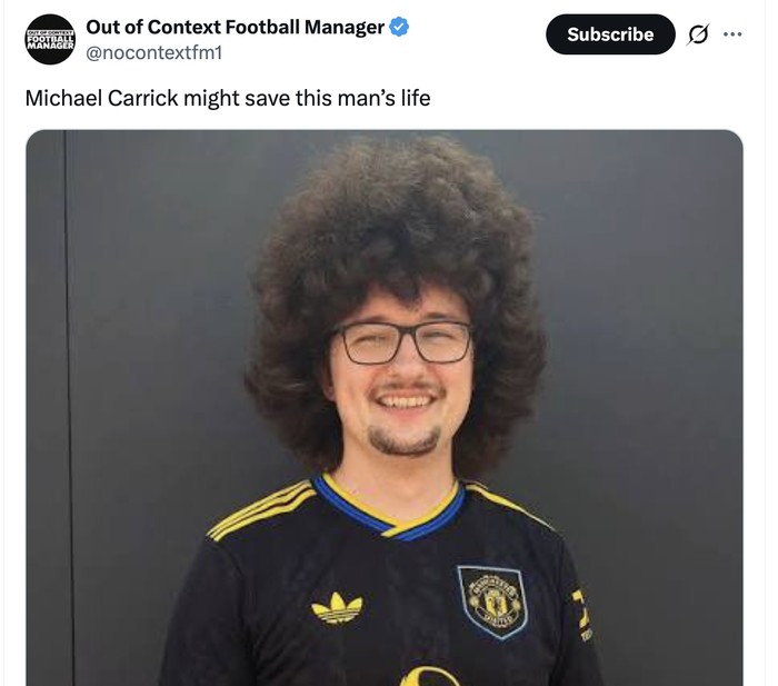 Akankah Carrick bisa membawa MU menang 5 kali berurutan dan akhirnya membuat fans yang satu ini pangkas rambut? Foto: X.com