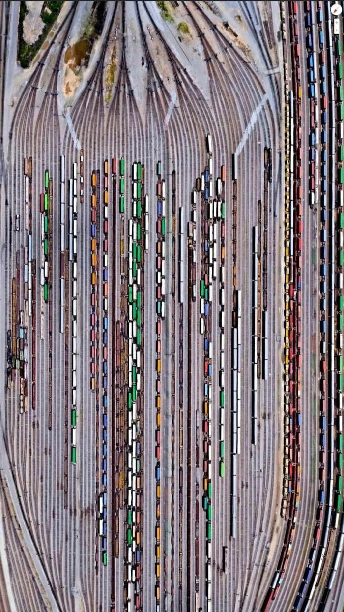 Inman Railroad Yard, Atlanta, Georgia. Depo kereta ini terlihat sangat rumit, tapi malah menjadi pemandangan yang luar biasa. Foto: (Bored Panda).