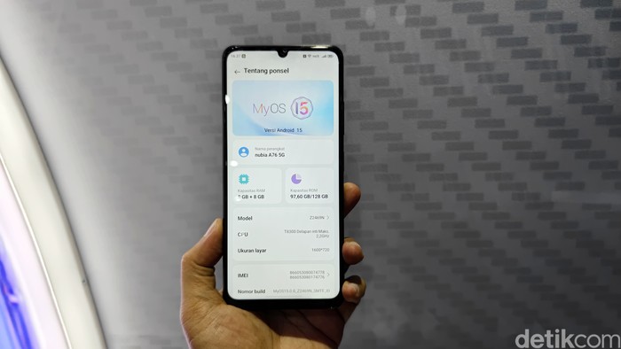 Nubia A76 5G merupakan ponsel entry-level ini hadir untuk memperluas adopsi 5G di Tanah Air. Dapur pacunya ditenagai oleh chipset T8300 dengan RAM 8 GB dan memori internal 128 GB. Foto: Adi Fida Rahman/detikINET