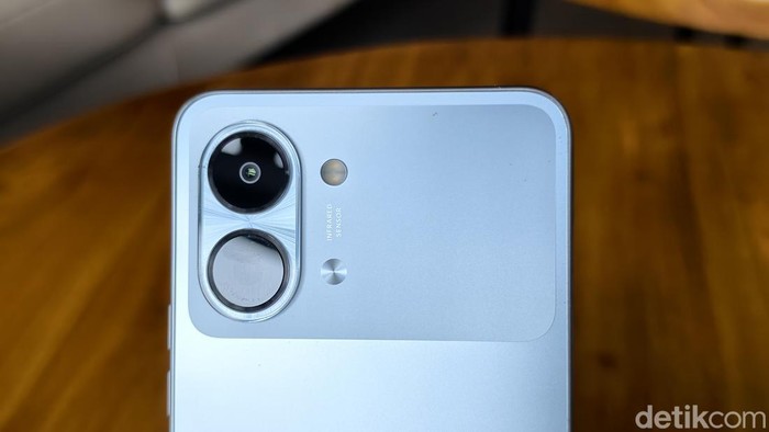 Di bagian belakang terdapat kamera 13 MP dengan fitur AI Best Moment FlashSnap yang dapat menangkap momen bergerak secara optimal saat di bawah kondisi pencahayaan terang Foto: Adi Fida Rahman/detikINET