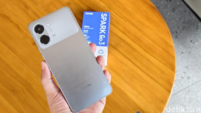 Ponsel Android entry-level Tecno Spark Go 3 resmi dirilis di Indonesia. Ponsel seharga Rp 1 jutaan ini mengusung desain tahan banting dan sederet fitur AI pintar. Foto: Adi Fida Rahman/detikINET
