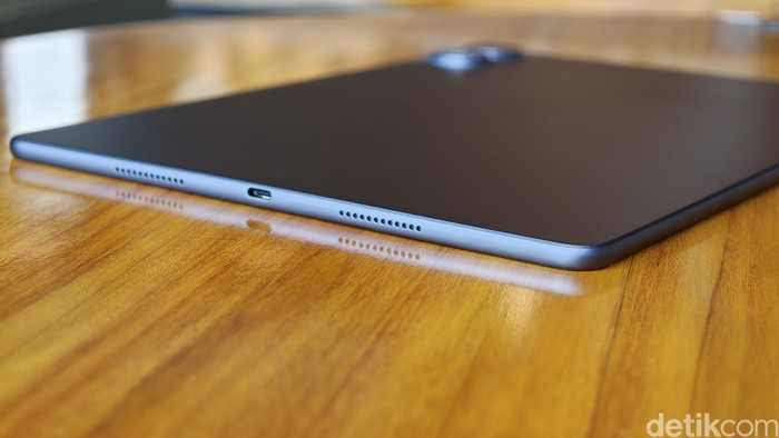 tablet ini dilengkapi sistem empat speaker immersive sound yang menghasilkan audio bertenaga dan jernih. Selain itu dibekali port USB-C untuk pengisian daya maupun transfer file. Foto: Adi Fida Rahman/detikINET