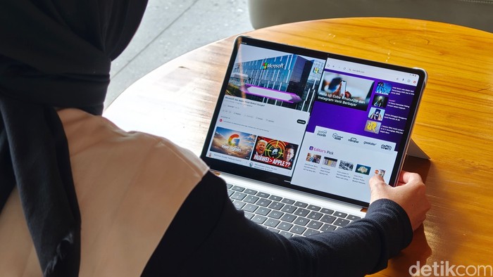 Salah satu fitur unggulan XPad Edge adalah layar berukuran 13,2 inch dengan resolusi 2.4K Eye Protection Display. Layar luas dan tajam ini memberikan ruang kerja lebih lega untuk multitasking, presentasi, serta aktivitas kreatif. Foto: Adi Fida Rahman/detikINET
