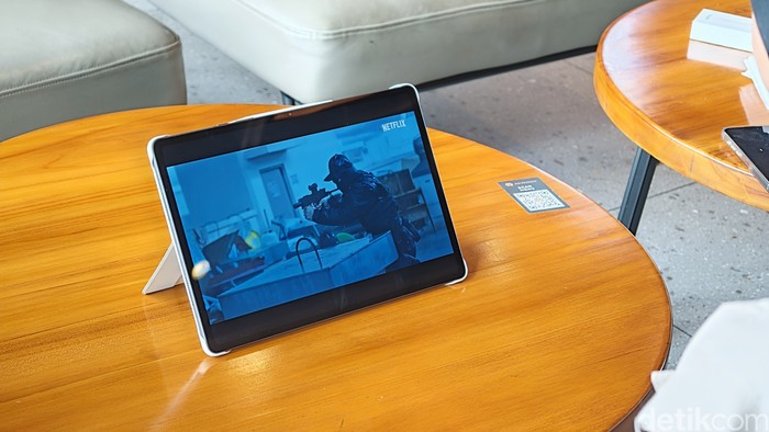 Kita bisa melepas baikan keyboard sehingga bisa menggunakan mode stand untuk menonton. Foto: Adi Fida Rahman/detikINET