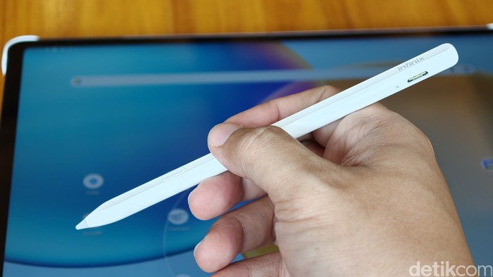 Untuk kebutuhan menulis dan menggambar, perangkat ini kompatibel dengan X Pencil 20 yang dijual terpisah. Foto: Adi Fida Rahman/detikINET