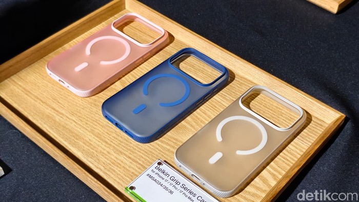 Belkin Grip Series Case harga Rp 499.000 sebagai pelindung iPhone 17 series. Case ini ringan & tipis: perlindungan jatuh hingga 6.6ft/2m (military-grade), bumper bertekstur anti-slip untuk genggaman aman & nyaman, kurangi risiko jatuh. Kompatibel Qi2 & MagSafe untuk charging nirkabel cepat tanpa lepas case.
