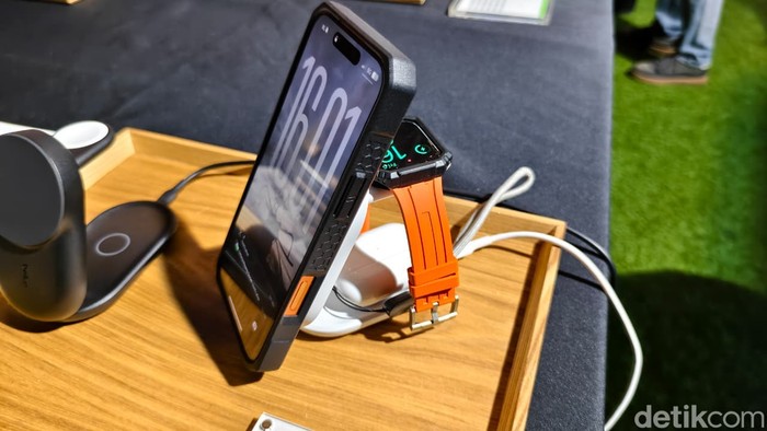 Bisa mengisi iPhone, Apple Watch (fast charge hingga 80% cepat), dan AirPods (hingga 5W) secara simultan dalam desain 3-in-1. Sertifikasi Qi2 resmi, magnetic alignment presisi (kompatibel MagSafe & Android Qi2), case-friendly, dan cross-platform.Β Foto: Adi Fida Rahman/detikINET