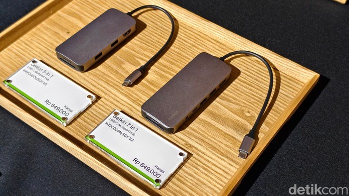 Belkin USB-C Multiport Hub unggul sebagai solusi ekspansi port laptop. Ada opsi 7in1 dan 5in1. Desain slim aluminum portable (ideal travel/office), transfer data cepat 5Gbps, plug-and-play kompatibel MacBook/Windows/Chromebook, charging simultan tanpa drop performa, port lengkap kurangi dongle jungle, build quality premium tahan lama, garansi 2 tahunβproduktivitas maksimal dalam satu hub! Foto: Adi Fida Rahman/detikINET