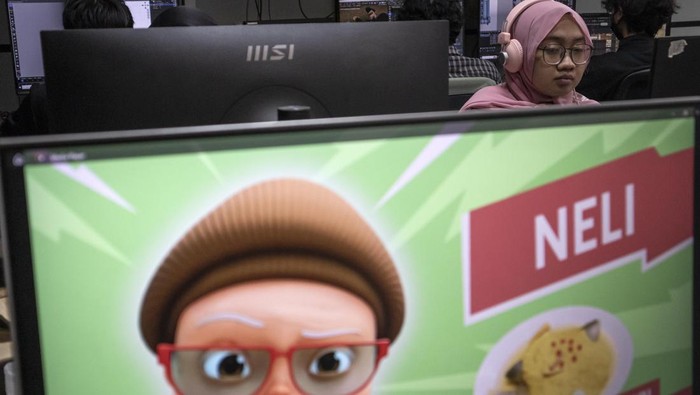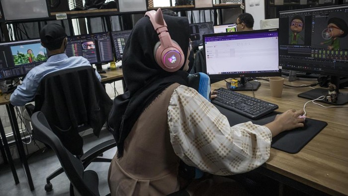 Sedikitnya 18 pekerja kreatif terlibat aktif dalam proses produksi, mulai dari perancangan karakter, animasi, hingga pascaproduksi. Sebagian besar di antaranya merupakan anak muda yang tumbuh bersama perkembangan teknologi digital. ANTARA FOTO/Abdan Syakura