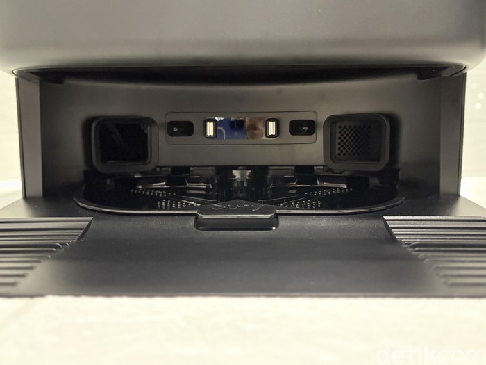 Pangkalannya terbagi menjadi tiga tingkat, yang mana bagian paling bawah untuk membersihkan bantalan pel dan memindahkan kotoran yang tadi sudah disedot. Foto: Panji Saputro/detikINET