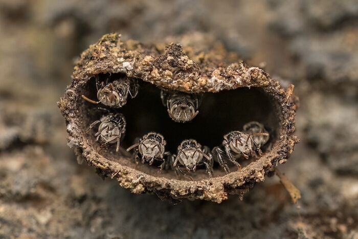 Juara 1 kategori Young karya Rithved Girish. Sarang lebah tanpa sengat (kemungkinan Tetragonula sp.) di Mezhathur, Kerala, India. Foto: Close-Up Photographer Of The Year