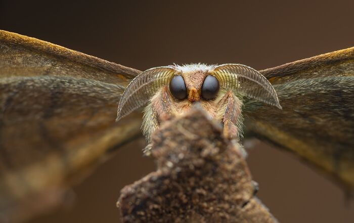 Juara 1 karya Invertebrate Portrait karya Laurent Hesemans. Ngengat (Bombycidae sp.) di Tinamaste, Kosta Rika. Foto: Close-Up Photographer Of The Year