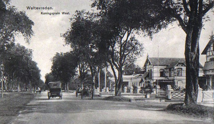 Jalan Merdeka barat tahun 1920an masih berdiri rumah-rumah pejabat Belanda sederet dengan Museum Gajah sekarang. Foto: Istimewa/Colletie Tropenmuseum