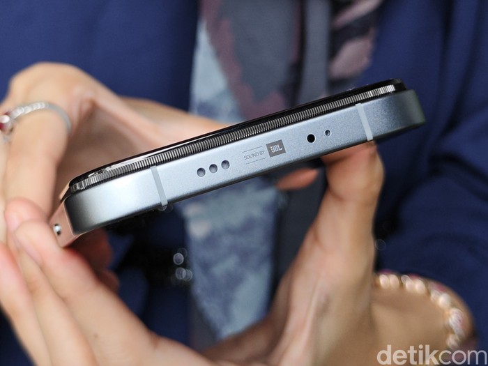 Foto: Adi FR/detikINETDari sisi multimedia, ponsel ini dibekali stereo speaker dengan tuning Sound by JBL yang dirancang menghasilkan efek suara imersif saat menonton film, bermain game, atau mendengarkan musik.